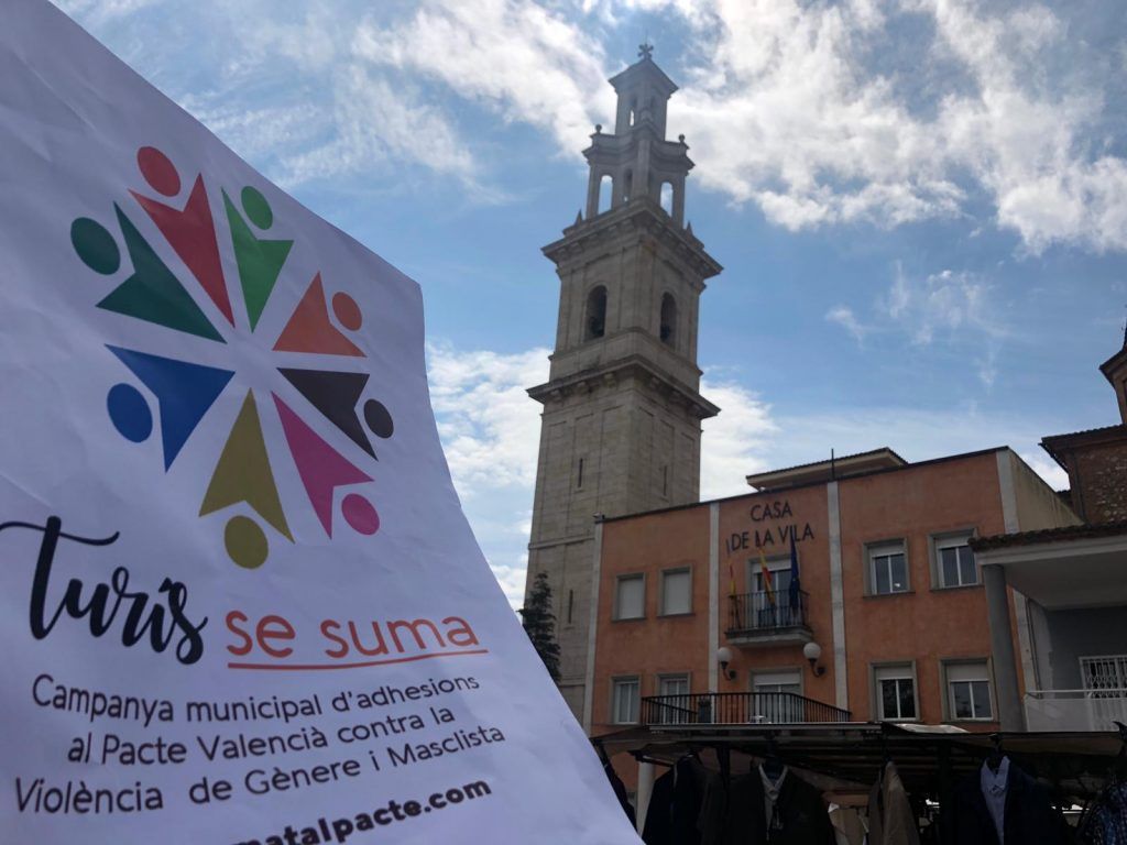 La campanya va tindre lloc la setmana passada en els mercats i comerços del municipi L’acció va ser coordinada per l’equip d’EQUÀLITAT Els dies 3 i 5 d’abril l’Ajuntament de Turís ha fet una campanya per sumar adhesions al Pacte Valencià contra la Violència de Gènere i Masclista. L’acció està emmarcada en la subvenció del PACTO DE ESTADO CONTRA LA