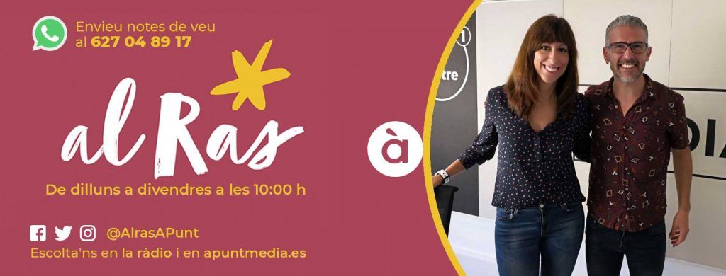 Como sabrás, desde el inicio de las emisiones de la nueva televisión pública valenciana- À Punt (junio 2018) hemos ido colaborando semanalmente en el magazine de El Matí d’ÀPunt. Desgraciadamente el programa apagó sus focos hace unos meses….pero ahora, de nuevo, volvemos, esta vez a la radio pública valenciana, en concreto al programa Al Ras, presentado por Jèssica Crespo y