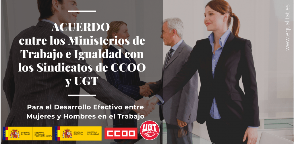 El pasado 30 de julio, los Ministerios de Trabajo e Igualdad, junto con los sindicatos mayoritarios, CCOO y UGT, presentaron la firma del “Acuerdo para el Desarrollo de la Igualdad Efectiva entre Hombres y Mujeres en el Trabajo” Se trata de un acuerdo entre los citados ministerios y los sindicatos por el cual se asume el compromiso de elaborar 2