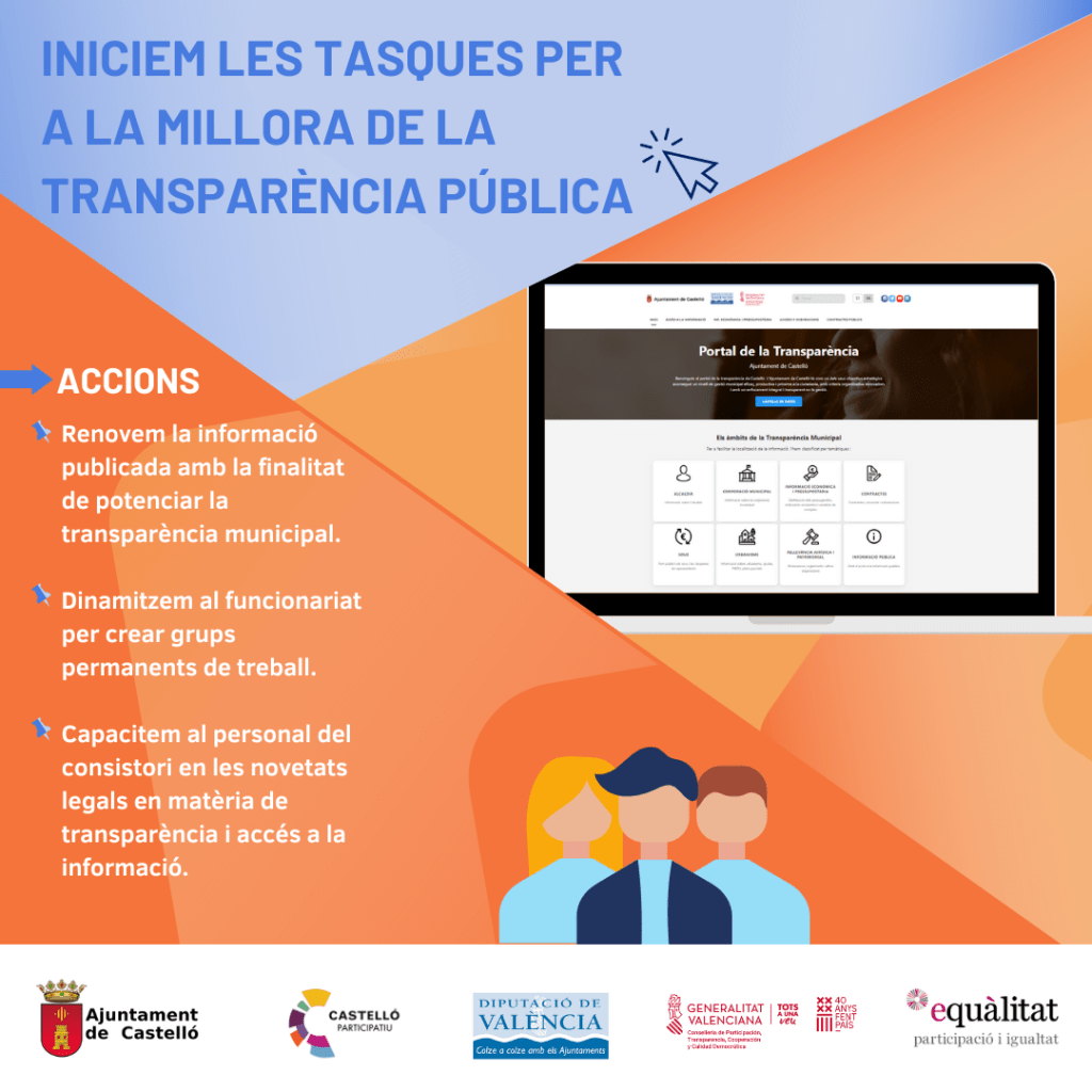El consistori busca donar un pas endavant en el camí de la transparència i l’accés a la informació públic iniciant la seua Estratègia d’Actualització del Portal de Transparència, amb l’objectiu d’ampliar i reforçar la transparència en l’exercici de l’activitat pública de l’Ajuntament de Castelló.