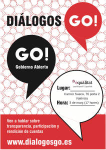 Desde EQUÀLITAT queremos ayudar en la estrategia de Gobierno Abierto de la Diputació de València y por ellos nos hemos unido a la iniciativa DIALOGOS GO. La mecánica es sencilla pero muy atractiva. Se trata de conversar y dialogar sobre la estrategia que ha publicado la Diputació de València para que la misma se empodere de información y opiniones de