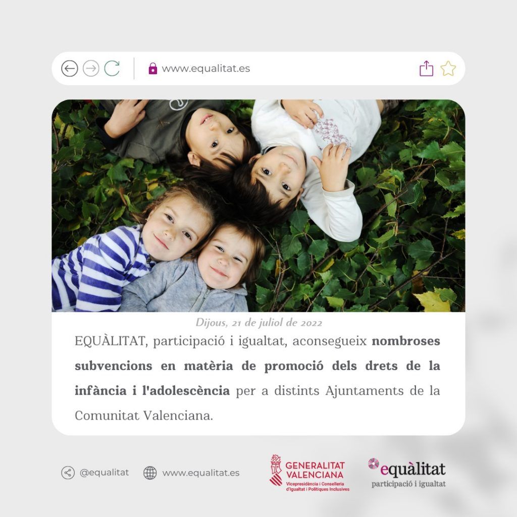 - La Generalitat Valenciana ha publicado el listado de subvenciones concedidas en materia de infancia y adolescencia para el ejercicio 2022.