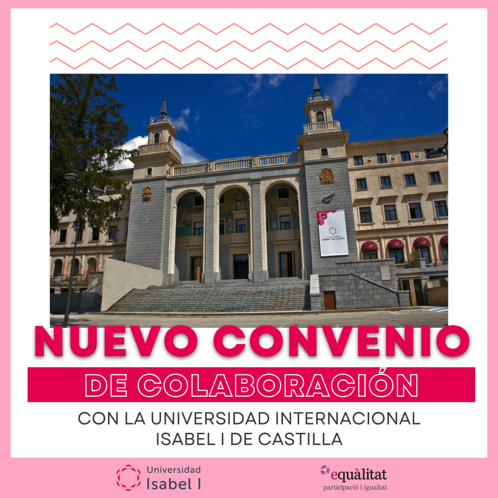 La Universidad Internacional Isabel I de Castilla y EQUÀLITAT, participació i igualtat han llegado recientemente a un acuerdo ratificado por Convenio de Colaboración para la realización de prácticas externas en nuestra firma. El acuerdo nace del compromiso de ambas entidades con la educación, la formación y el empleo. Este convenio, por tanto, acerca la realidad social y profesional al alumnado de la universidad.