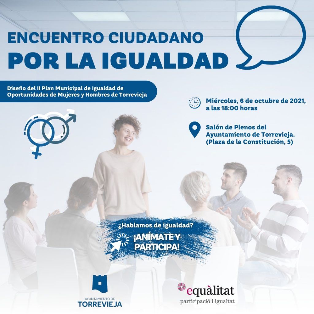 - El Ayuntamiento de Torrevieja va a llevar a cabo un Encuentro Ciudadano por la Igualdad, en relación con el diseño del II Plan Municipal de Igualdad de Torrevieja.
